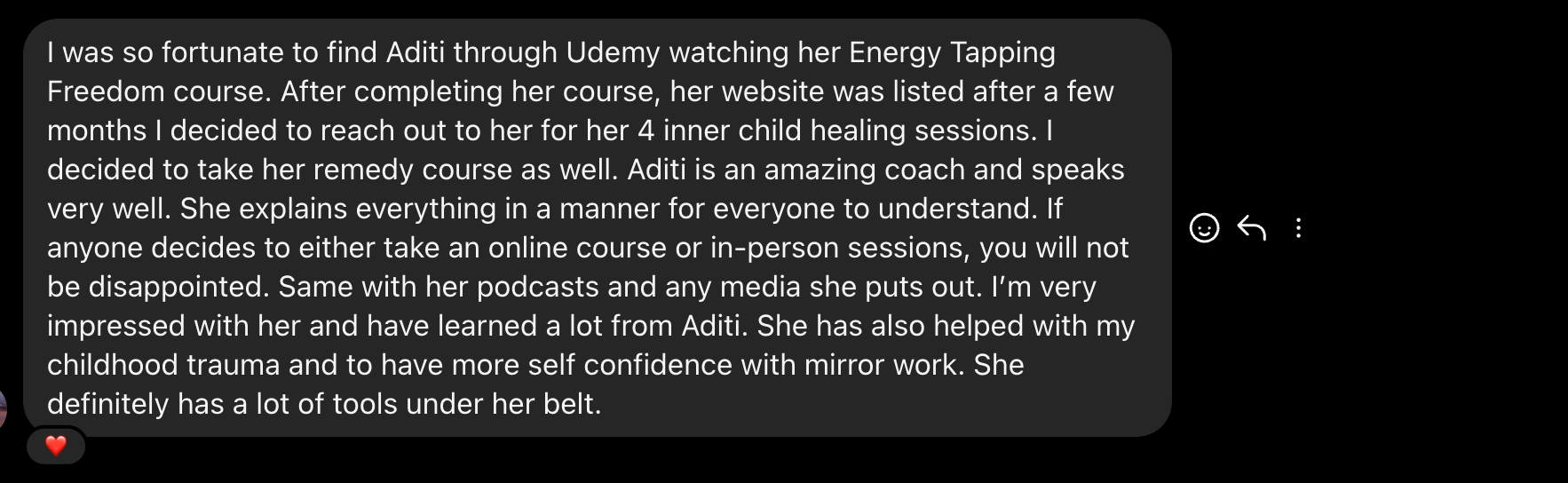 “I have been able to manifest my dream partner in just 3 weeks of starting this. I feel like a different person and cant wait to try this again for growing my business. This is magical”